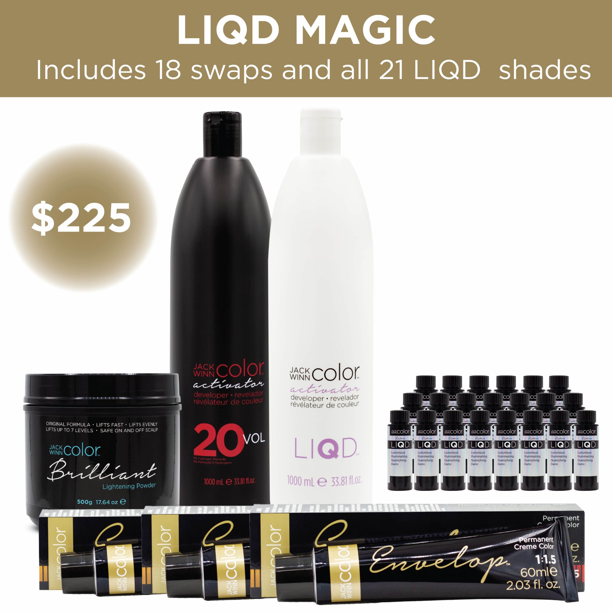 It took 4 years to develop LIQD toners that shine brilliantly and don’t leave the hair feeling like straw. Plus you can control a glaze, gloss or glass finish and depth of level with mixing ratios or mixing with clear. And it doesn’t stink.